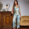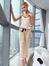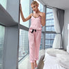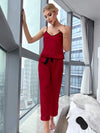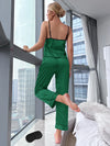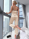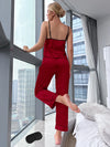 The Noire Satin Sleep Set captures the quiet allure of evening elegance — sleek, feminine, and timelessly refined. Crafted from smooth, lustrous satin, this two-piece ensemble glides effortlessly against the skin, offering a sensation of pure indulgence. The sleeveless V-neck top pairs beautifully with flowing ankle-length pants, creating a silhouette that flatters while inviting ease and relaxation.