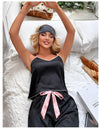 Designed for women who appreciate understated luxury, The Noire Set transitions seamlessly from bedtime to leisurely mornings, its soft drape and gentle sheen reflecting the light with subtle sophistication. Perfect for warm nights or indulgent lounging, it’s a modern essential that combines sensual comfort with classic grace.