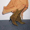 Handcrafted from supple genuine leather, these boots feature a sleek stiletto heel, pointed toe, and streamlined shaft that flatters the leg with every step. Designed for women who move with quiet confidence, they bring an understated sensuality to autumn and winter dressing.